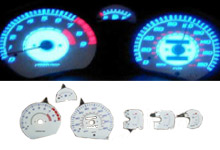 EURO REVERS GLOW GAUGE: Turbo Models: $54.95 Thw White Euro Reverse Glow Gauge covers the OEM black gauge face. This would glow in two colors Xenon Blue and Light Green when you tuned the light on. The gauge control switch allow you to change the color. Also available in silver face. |