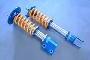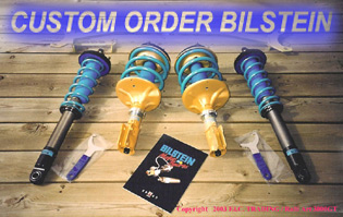 BILSTEIN RACING COIL OVER Kit for 3000GT, Spyder VR4, Stealth TT, GTO TT: $3399.00 This BILSTEIN kit uses inverted racing shocks. This Coil Over Kit is best for track use. However, the kits maintain decent ride comfort on street as well. This BILSTEIN kit comes with front camber adjustable pilow ball upper mounts. This set up would lower ride height by 1 inch. Another 1.5 inch can be lowered by coil adjusters. Please make sure that there is more than 22mm clearance between your struts and tires. Spacers would be required for this kit if there is less clearance than 22mm clearance. |